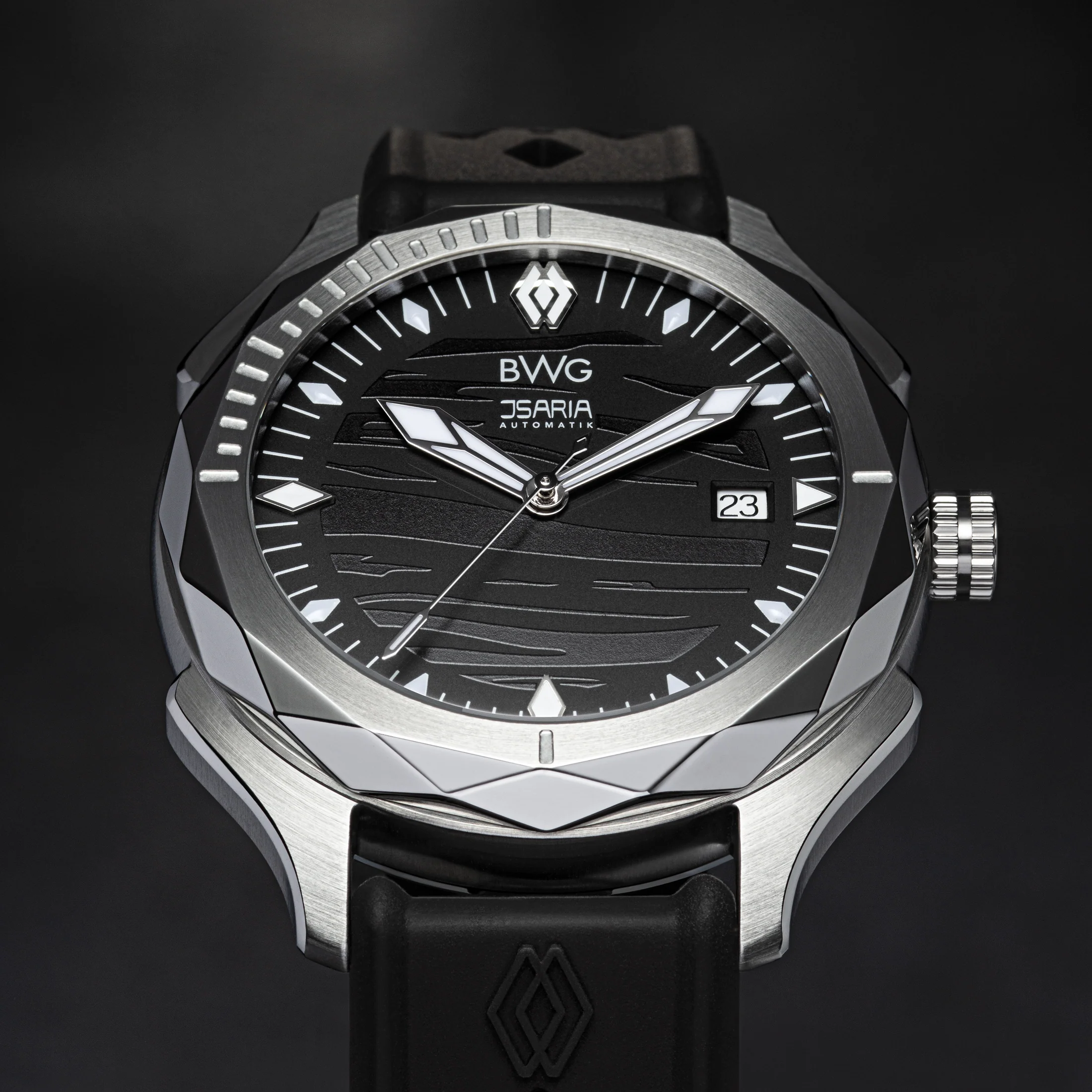 The BWG Isaria by Bavarian Watch combines German precision with Swiss craftsmanship in a sleek design. Its 42.1mm stainless steel case, polished and brushed by hand, holds a brass dial coated in Swiss varnish with 3D-printed appliqués, rhodium-plated for a refined look. Equipped with Swiss Super-LumiNova for visibility in all conditions, it’s as functional as it is stylish. With scratch-resistant sapphire crystals on both sides and a hypoallergenic medical-grade silicone strap, the Isaria is designed for both durability and comfort.
