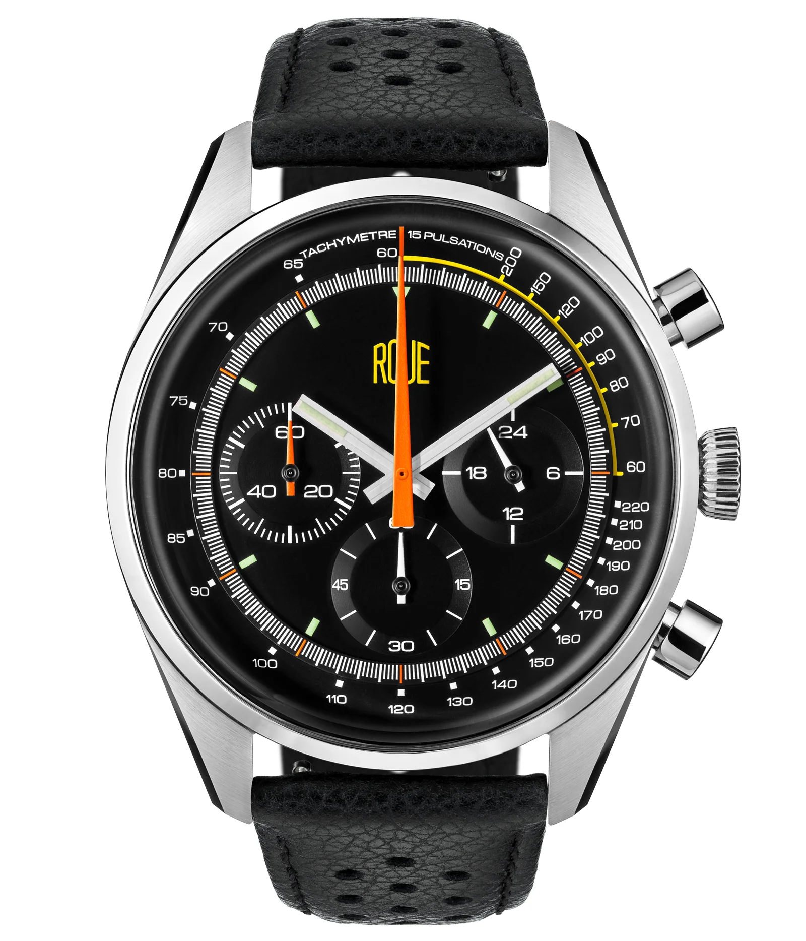 For those who appreciate vintage charm paired with modern precision, the new Roue TPS stands out. This limited-edition chronograph (1,000 pieces) showcases a 316L stainless steel case with brushed and sandblasted finishes, bringing a unique look to the wrist. Driven by the Japanese Seiko VK63 meca-quartz movement, it blends quartz accuracy with mechanical chronograph functions. The TPS features a triple-layer dial with tachymeter and pulsometer, and comes with two straps—perforated leather and silicone—making it versatile for various settings.