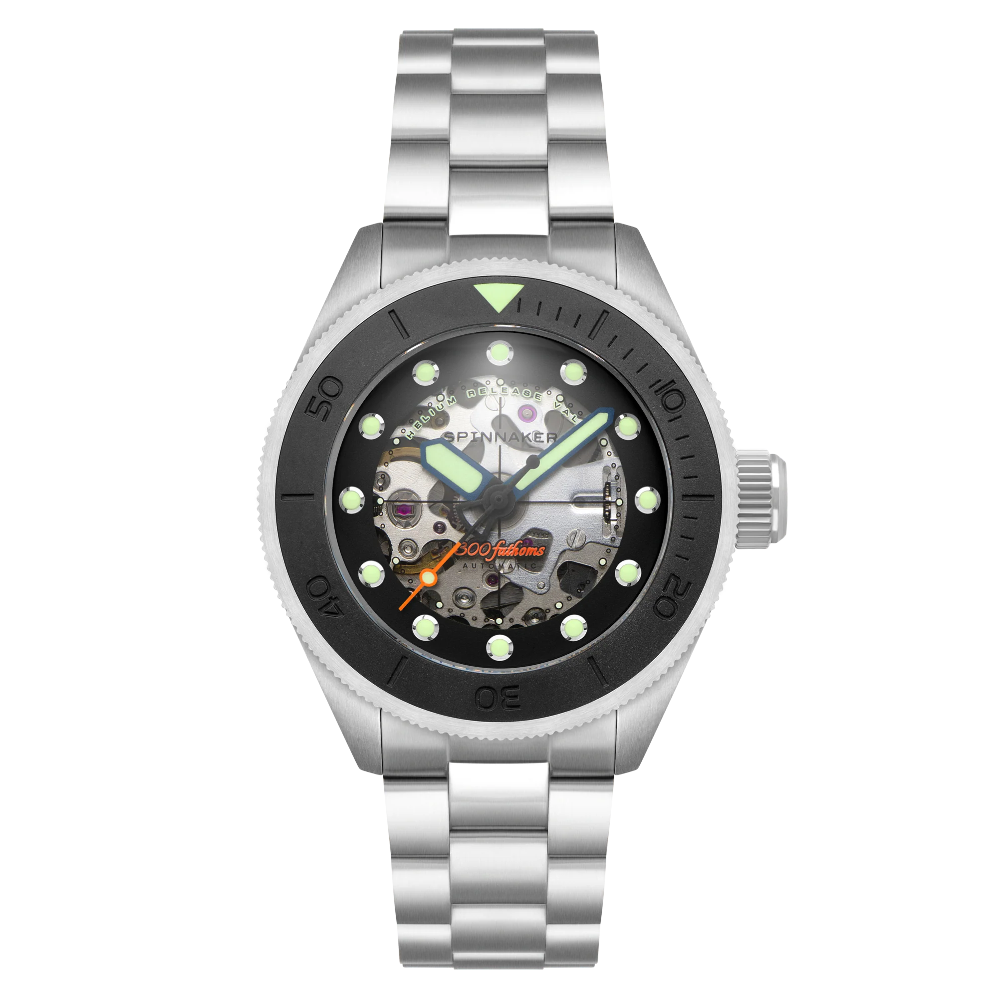 Dive into the allure of the Spinnaker Piccard Skeleton Automatic, where robust design meets intricate craftsmanship. This timepiece features a striking 45mm stainless steel case and an impressive 21mm thickness, making it a standout on any wrist. Powered by a precise automatic movement, the Piccard Skeleton showcases its inner workings through a black dial with applied indices illuminated by Swiss Super-LumiNova. Topped with a sapphire lens and offering a remarkable 55 ATM water resistance, this watch is as durable as it is visually captivating.