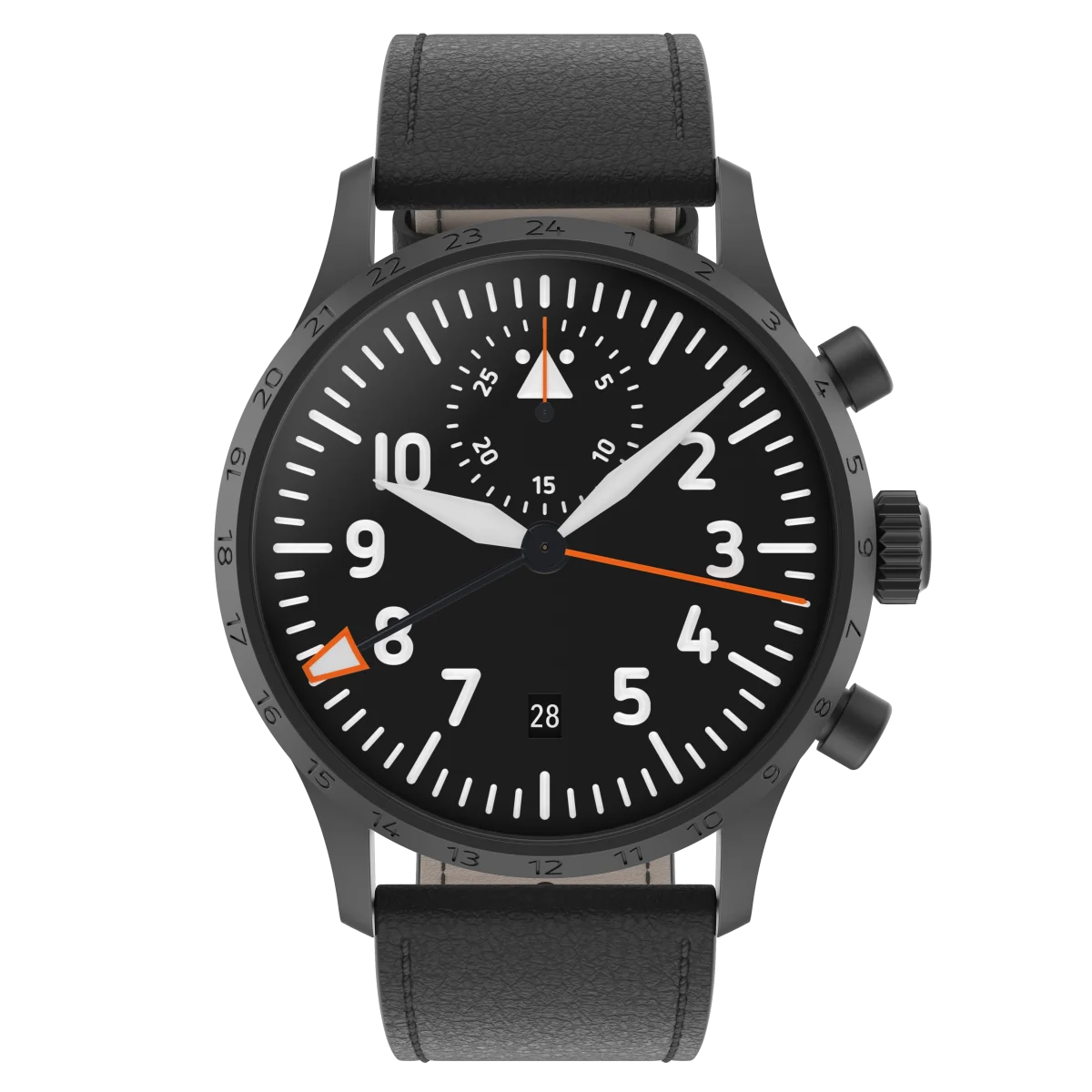 The Verus GMT Chrono Black Forest Limited is a striking timepiece, blending modern design with traditional craftsmanship. Encased in a 41mm matte black DLC-coated stainless steel case, this limited edition of just 10 pieces features a black dial with white hands and Superluminova BGW9 luminous color. Powered by the automatic Valjoux 7754 movement, it includes chronograph functionality and a sapphire crystal. The 5 ATM water resistance adds to its robust appeal, making it both stylish and functional.