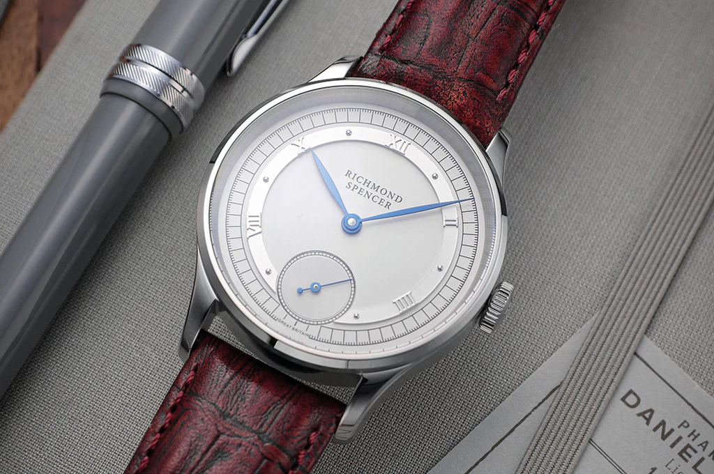 The Richmond Spencer PRS-8 Limited Edition is a tribute to a watch legacy, reimagining the original 2004 PRS-8 with a blend of vintage refinement and high-quality craftsmanship. Limited to just 90 pieces, it showcases the modified Unitas 6498 movement, featuring a swan-neck regulator, Geneva stripes, and blued screws, visible through a sapphire crystal case back. This 42mm stainless steel watch, complete with anti-magnetic protection and water resistance up to 100 meters, is a collector’s piece not to be reproduced again.