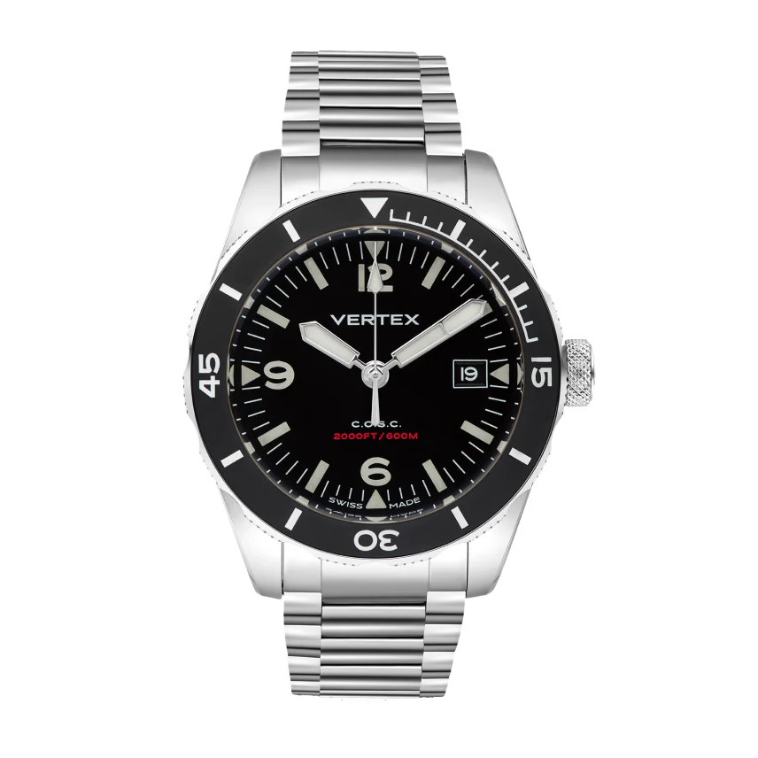 Vertex introduces the M60 AquaLion D, a robust dive watch with a 40mm stainless steel case and a thickness of 14mm. Featuring a matte black dial with Super-LumiNova X1 markers and hands, it boasts a water resistance of 600 meters and is ISO 6425 certified. Powered by the Sellita SW300-1 movement with a 42-hour power reserve, the AquaLion D includes a ceramic bezel and comes with multiple strap options.
